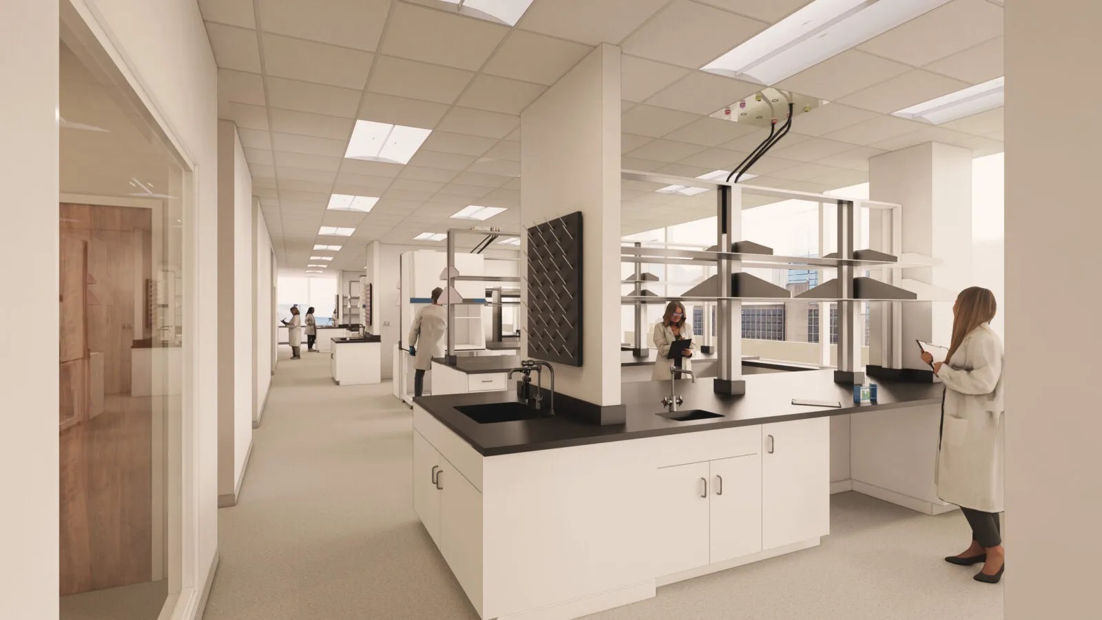 The scope also includes refreshed finishes and design upgrades across the main lobby, common corridors on the 8th through 10th floors, renovated bathrooms on the 9th and 10th floors, and select areas of the 8th floor. The result will be a thoughtfully balanced facility, increasing laboratory space to 65% while maintaining 35% dedicated office space.